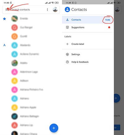 Google Contatos: total de contatos no celular